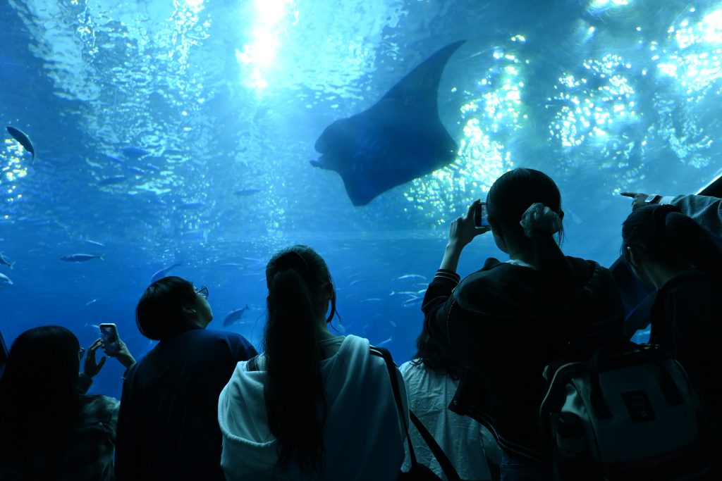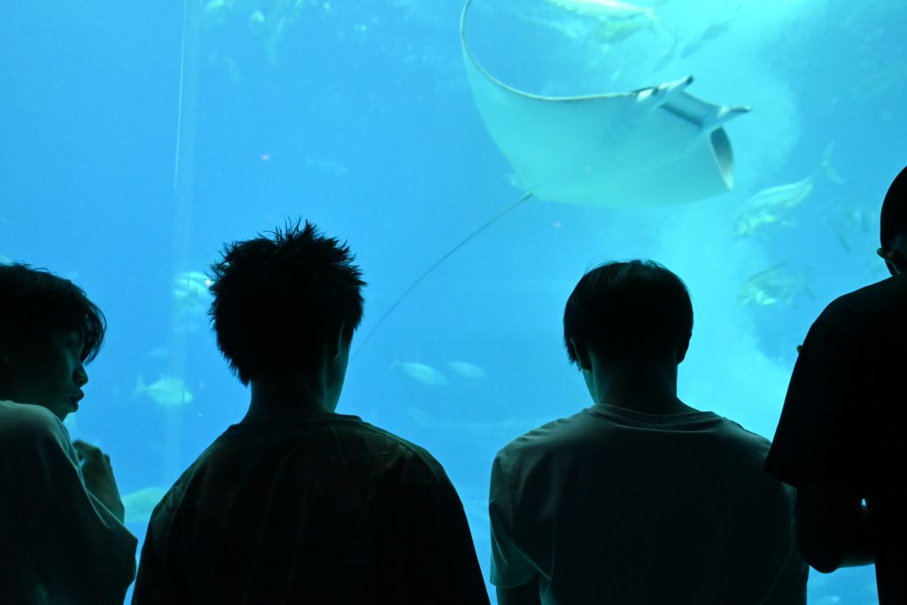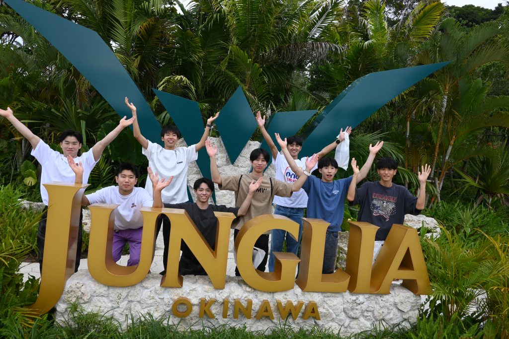 午前中に行った「ジャングリア」は今年7月にオープンしたばかりのテーマパークです。沖縄北部の豊かな自然を活かしたアトラクションを楽しむことができました。午後は「美ら海水族館」を見学し、巨大アクリルパネルで一望できる黒潮の魚たちの世界に圧倒されました。予定通り18:30頃にはホテルに到着し、その後ホテル近くのアメリカンビレッジにて各々が夕飯を食べました。