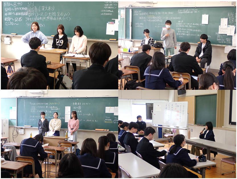 卒業生30名が12の分野に分かれ、2年生に対して合格体験やこれからやっておくとよいことなどを語ってもらいました。卒業生一人一人が体験した具体的なアドバイスが聞けました。